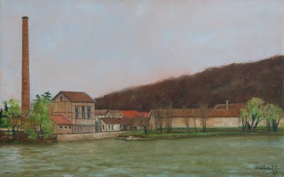Usine sur le Doubs; printemps.
